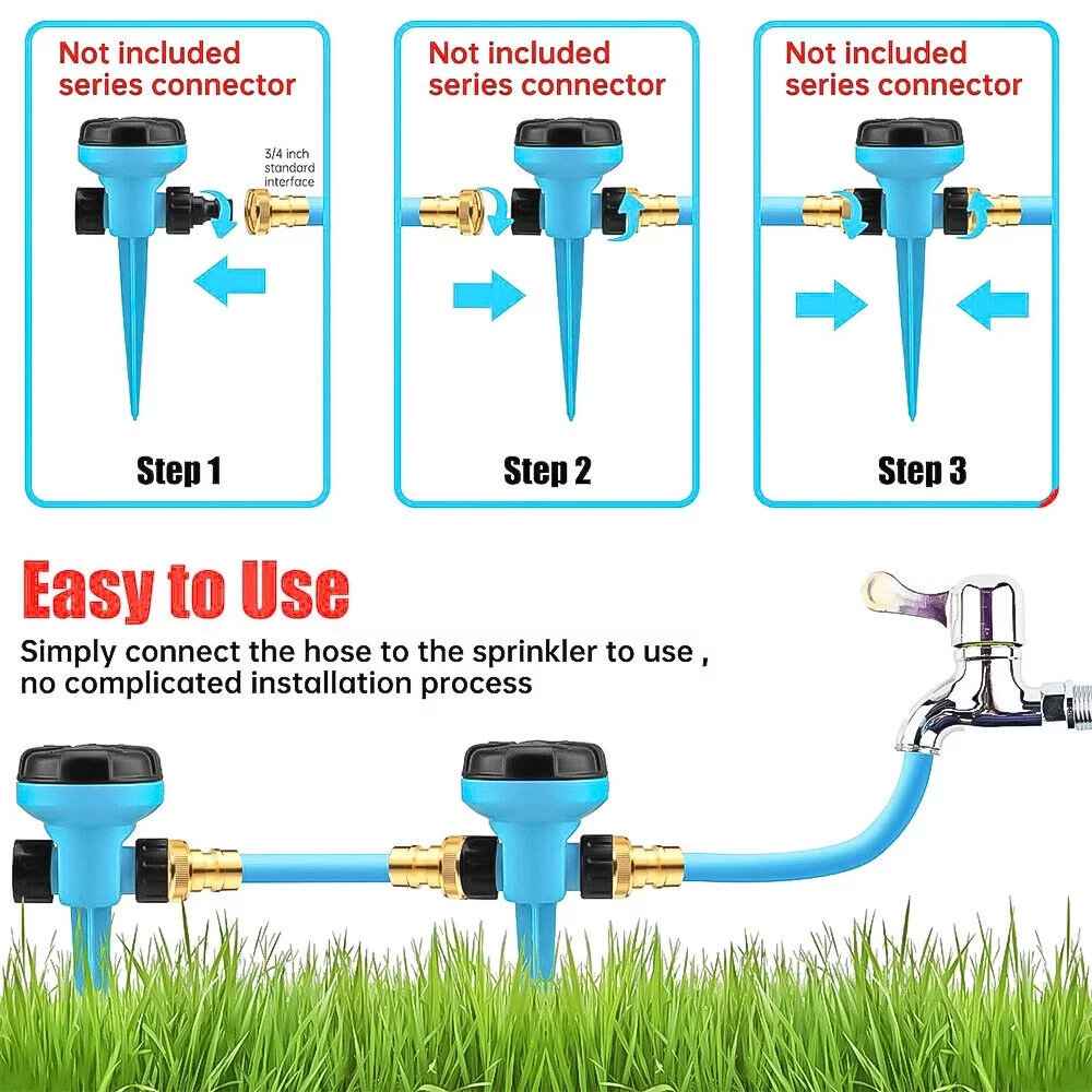 DetailAutomatic 360° Rotary Spray: Constantly sprays water in a 360-degree rotation without needing any additional power equipment. Experience hassle-free and efficient watering for your lawn. Water-Saving & Adjustable: Save water by easily adjusting the density, size, and range of water. Provides an effective irrigation system that ensures optimal hydration for your lawn. Versatile & Multipurpose: Use our sprinkler to irrigate lawns, gardens, crops, cool roofs, or even let children play in the water during summer. Enjoy its multi-purpose functionality for various outdoor activities. Quick & Easy Installation: Equipped with a quick connection adapter, our sprinkler is effortless to install. Get your lawn covered quickly with a simple and adjustable sprinkler, simplifying your lawn care routine. Durable Quality: Made from high-quality ABS material, our sprinkler is non-toxic and long-lasting. Its stable, leakproof design ensures water-saving operation and a prolonged service life.